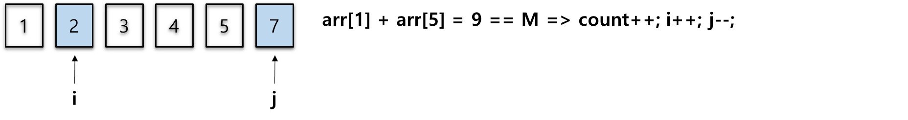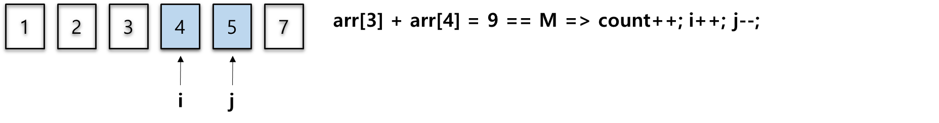 3. 2단계를 i와 j가 만날 때까지 반복합니다. 반복이 끝나면 count를 출력해줍니다.