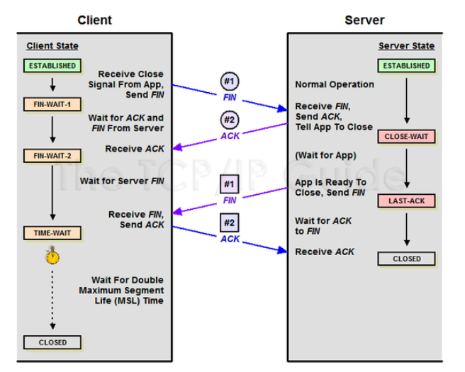 - CLOSED 서버는 ACK를 받고 CLOSED 상태로 들어가 종료합니다.