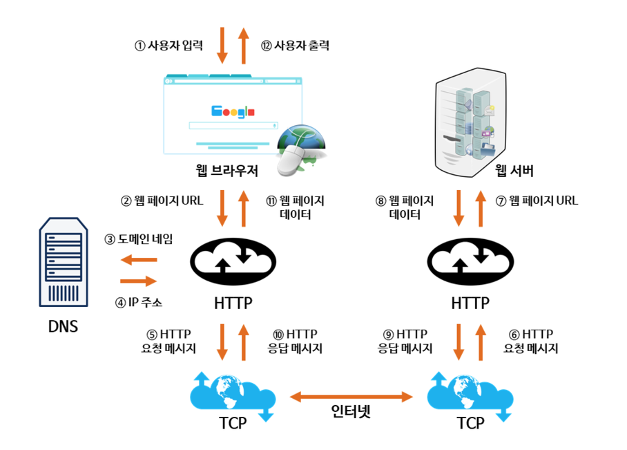 ● 사용자가 웹 브라우저를 통해 URL을 입력합니다.